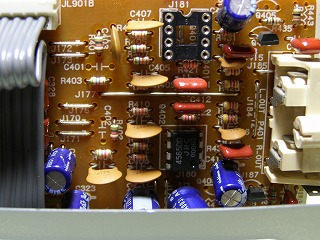 オペアンプを取るはずしソケットを取り付ける。オペアンプはJRC4565DDからBURR-BROWN OPA2604APへ