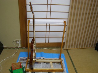 ギターを1日置いてみた、ボディ部分に貼った「コーナークッション」が剥がれてしまい使えない。