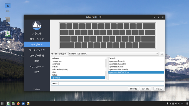 キーボードは左がjapanese右がDefauitとなっています。今回、Panasonic製なので右側をOADG 109Aを選択しました。