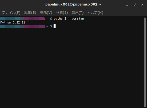 コマンドパレットのインタープリターを確認すると3.12.11が表示されました。