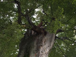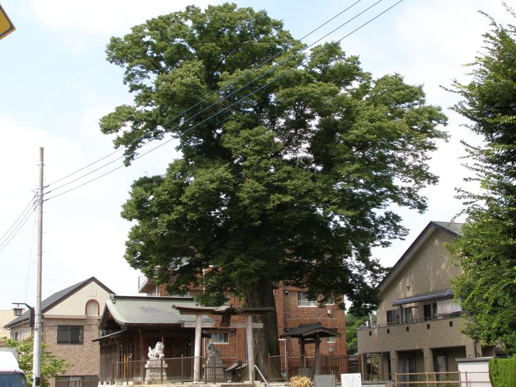 浅間神社のケヤキは、幹回り7メートル、樹高はおよそ23メートルあり、幹は地上6メートルのところで六本に分岐し、さらに上方で多数の枝を広げている。幹の西側に幅1.5メートル、長さ2.3メートルにわたって洞穴状の枯損部があるが、樹勢はきわめて旺盛である。ニレ科の落葉喬木であるケヤキは越谷市の木、埼玉県の木として制定されているが、浅間神社のケヤキは、市内で一番大きなケヤキであり、樹齢およそ600年と推定される。