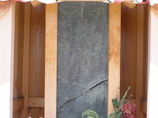 この板碑は、以前元荒川から引き上げられたと伝えられる、越谷では唯一の七字題目板碑である。