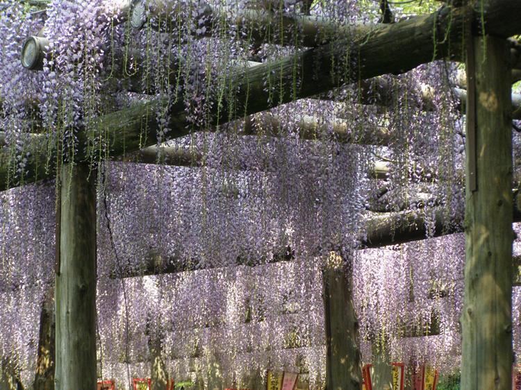 花は濃紫色で、枝下1.5メートルほど垂れ、一般に”5尺藤"と呼ばれています。花期は毎年5月初旬が最も見ごろで、毎年このころに「藤まつり」が盛大に開かれます。