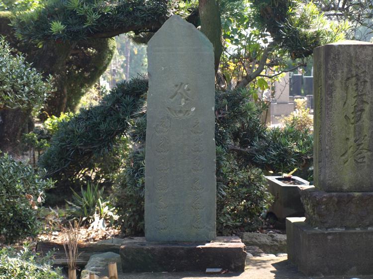 13仏とは死者に対する初7日から33回忌までに至る13回の仏事供養を掌る13の著薩を表わしたもので、この13仏信仰が庶民の間に広まったのは中世も半ばごろからといわれる。当寺の板碑は、文明3年(1471)銘のもので、高さ120cm、幅35cm、完全な形で残されており、この種のものでは代表的なものである。